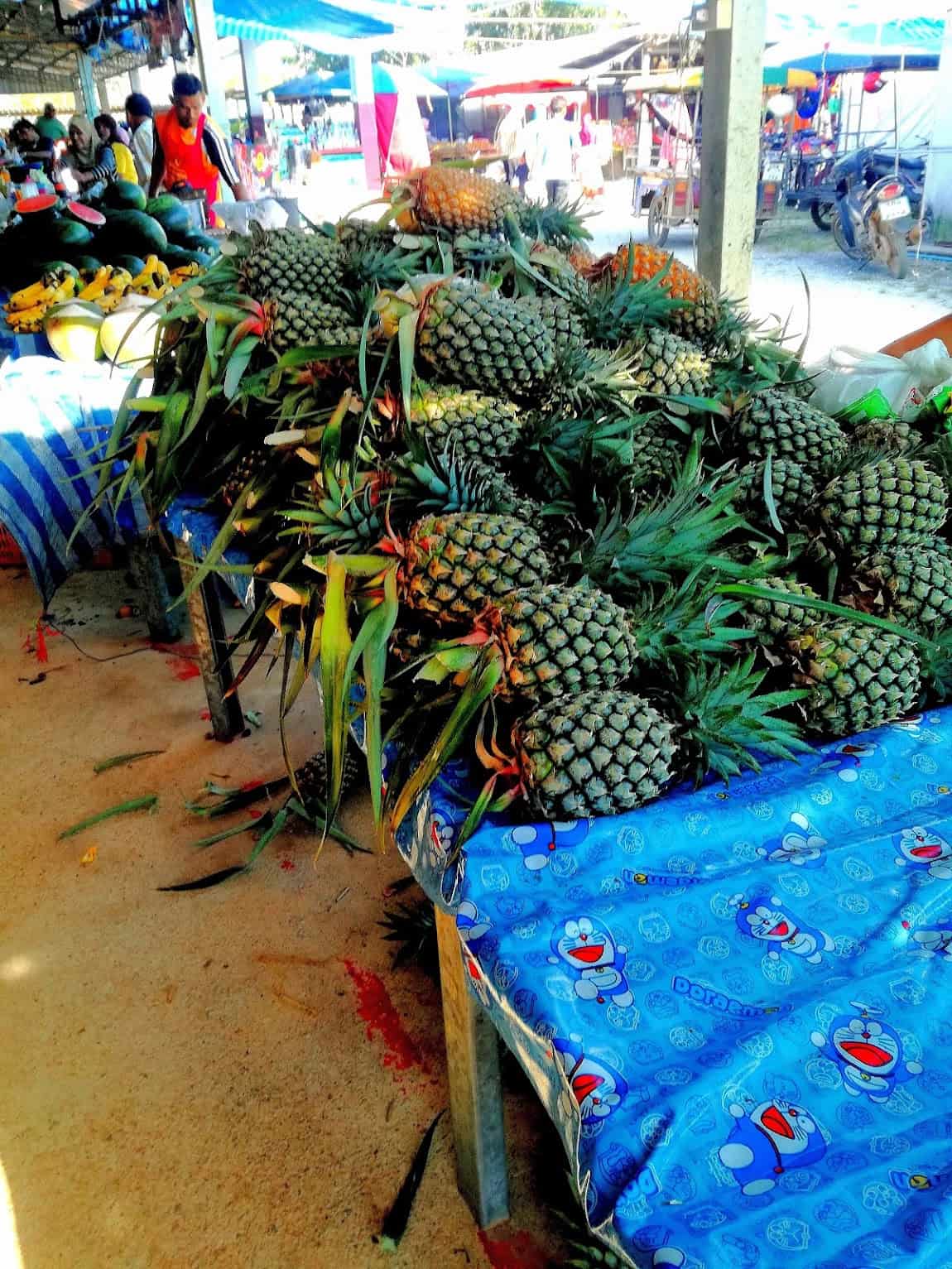 - Marchands de fruits locaux proposant des spécialités tropicales